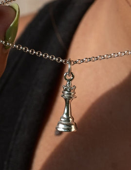 Make your next move and style with our chess piece charm & necklace. Our 3D chess piece jewellery is inspired by the most powerful piece of the game 'The Queen'