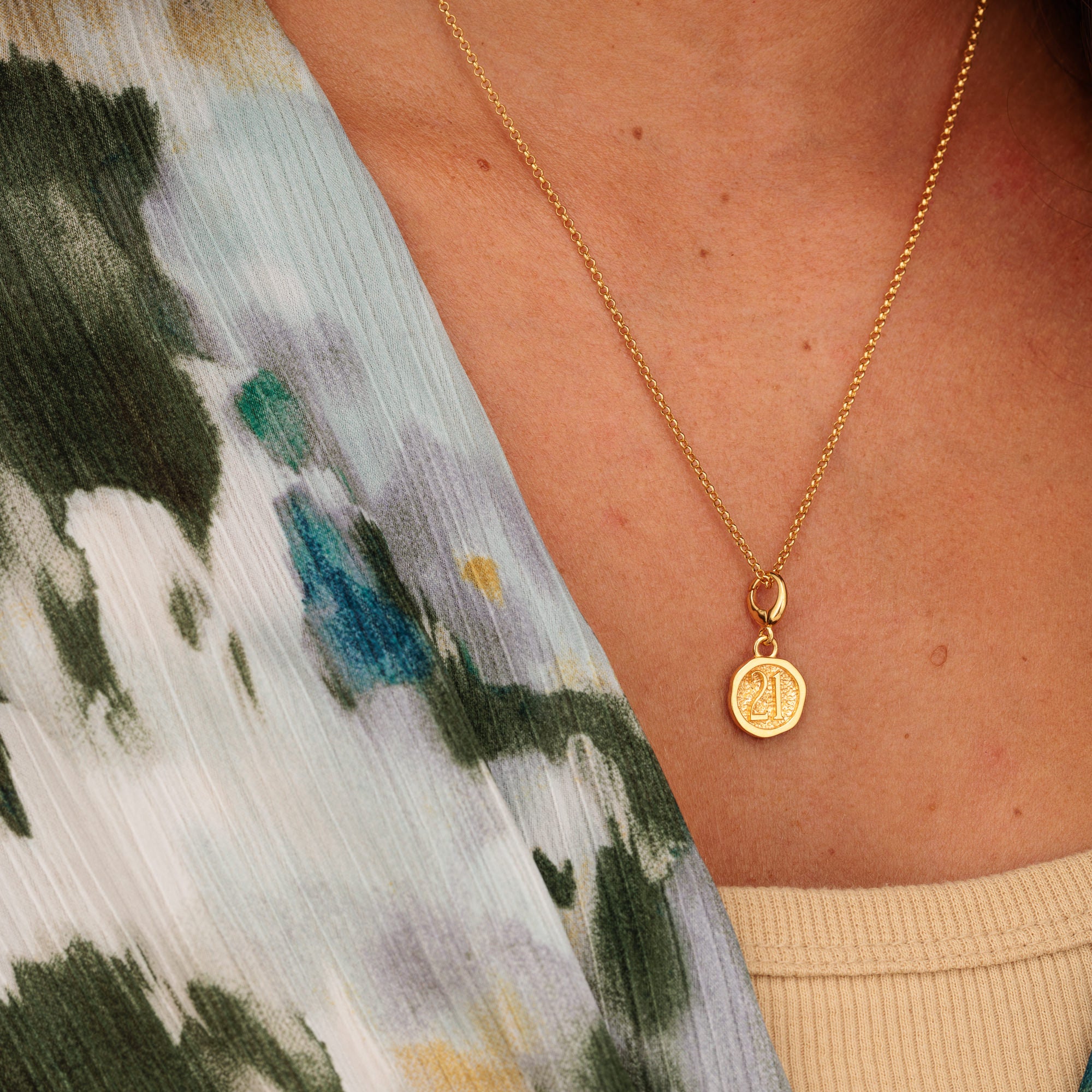 Raise a glass to 21! Our gold number 21 charm necklace is the ultimate way to celebrate a 21st birthday, anniversary or milestone moment. Whether it marks a new chapter, a big move, or stepping into adulthood with confidence, this keepsake necklace is made to shine. Crafted from 18ct gold-plated recycled sterling silver, the raised 21 sits within a smooth polished frame and a detailed centre for beautiful contrast and standout design.
