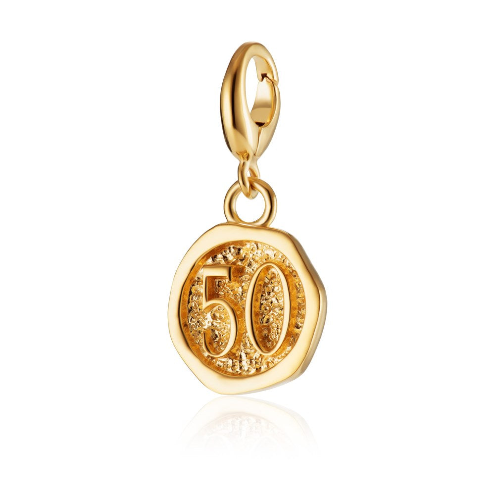 Mark your 50th milestone moments with this gold number 50 charm
