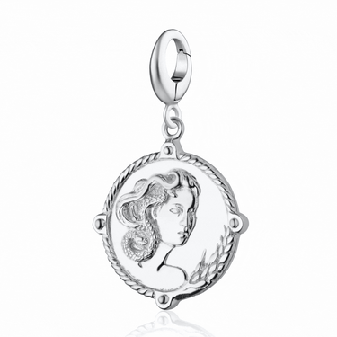 Drawing inspiration from the Greek goddess Demeter, revered to as "Mother Earth," this silver goddess charm pays homage to nature and the cycle of life. Intricately crafted on both sides, the charm showcases Demeter's portrait with snake hair symbolizing her ties to the underworld, and ears of wheat representing fertility. The reverse side boasts a captivating solar design, embodying nature's life-giving essence. Elevate your charm jewellery collection with the goddess Demeter charm, infusing your style with light and honouring the divine feminine within.