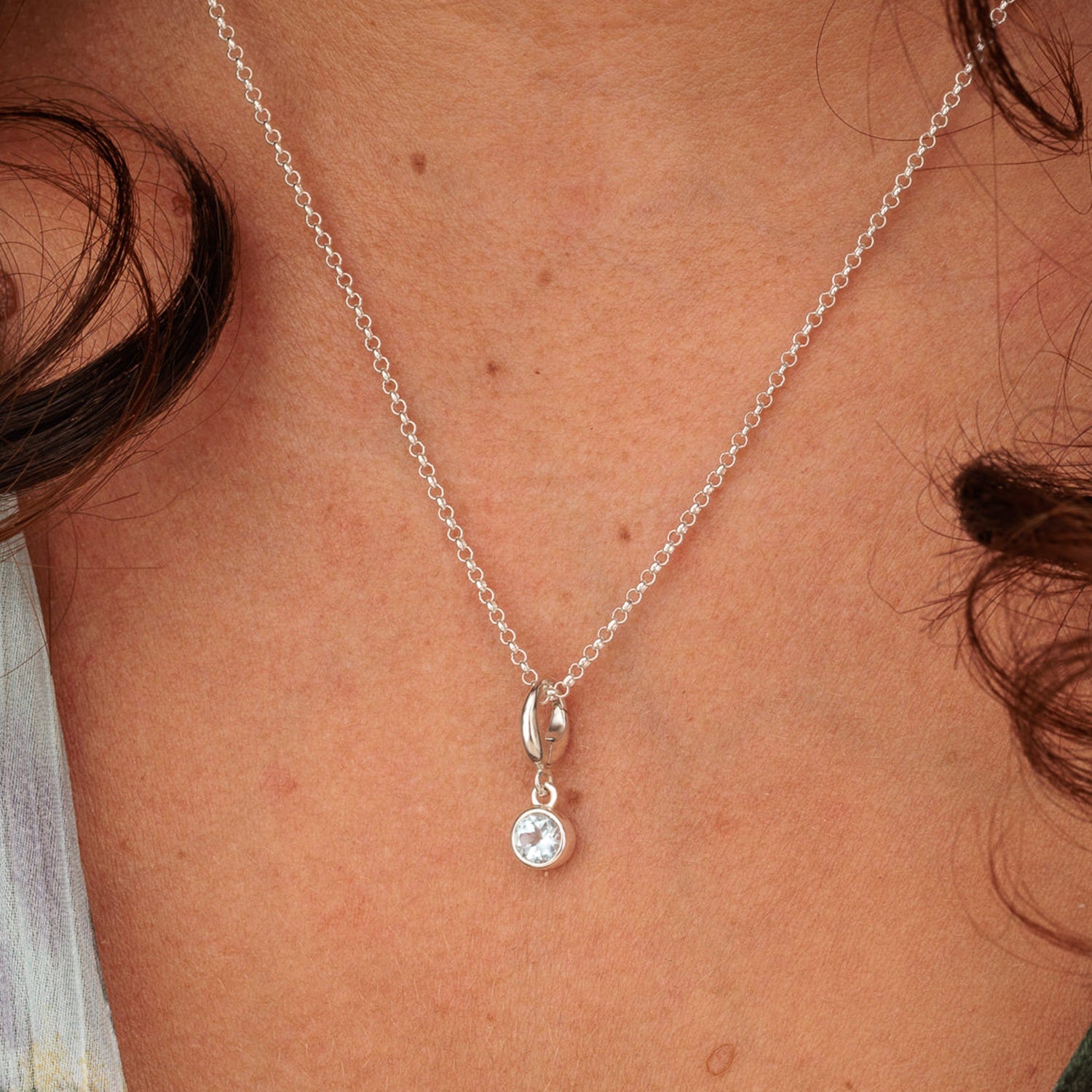 December Birthstone Charm Necklace (Blue Topaz)