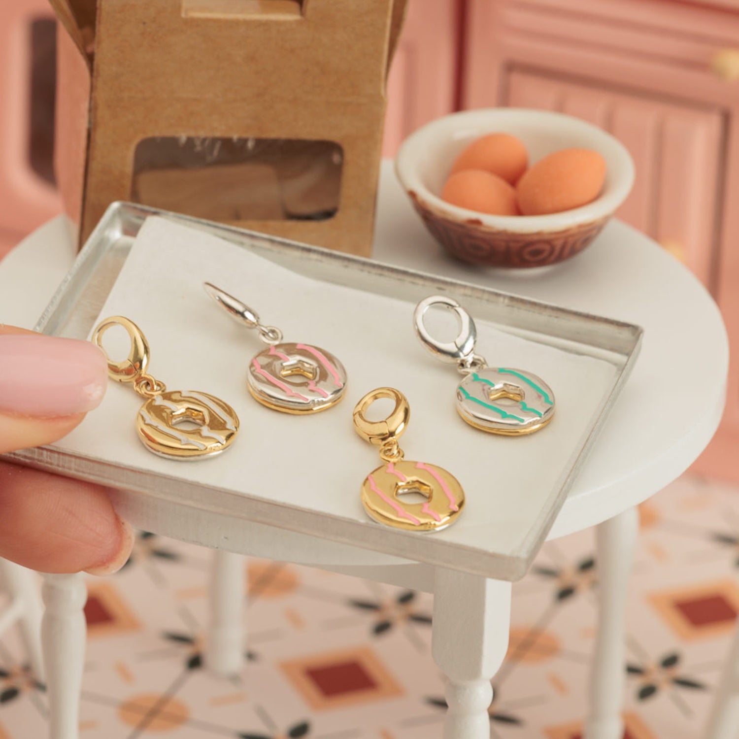 This exquisite gold plated party ring biscuit charm is a tasty addition to any charm bracelet. With its classic pink enamel icing ripples and detailed sterling silver lines on its underside, this piece brings back treasured childhood memories and has been an incredibly popular line in the Lily Charmed biscuit jewellery collection. These charms make a delightful addition to any outfit - utterly delicious!