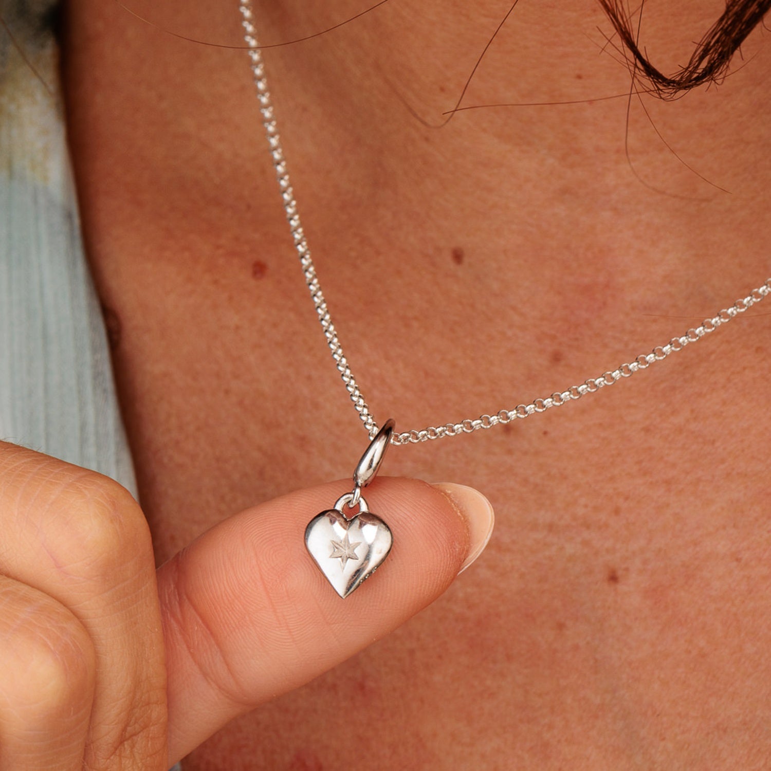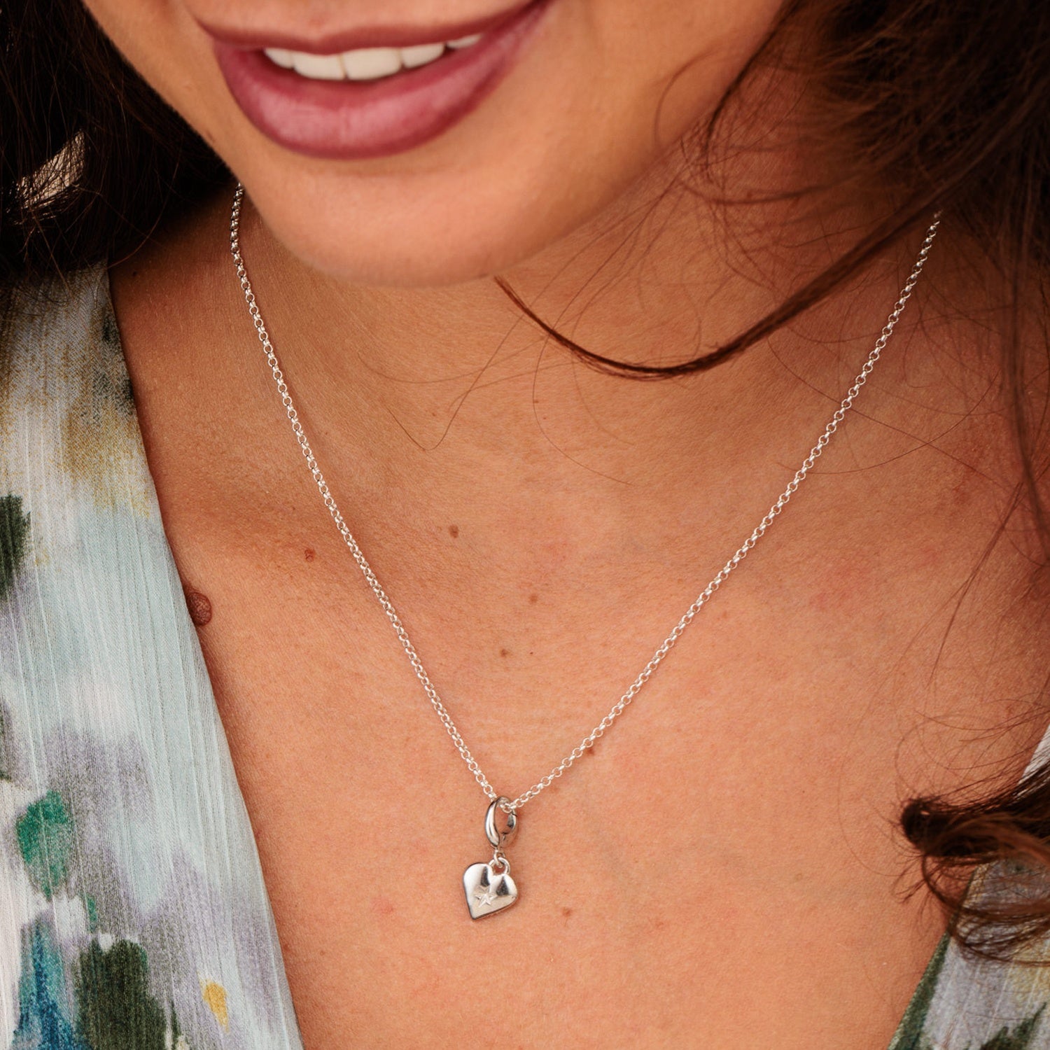 This heart charm necklace combines both star and heart motif for guidance and love