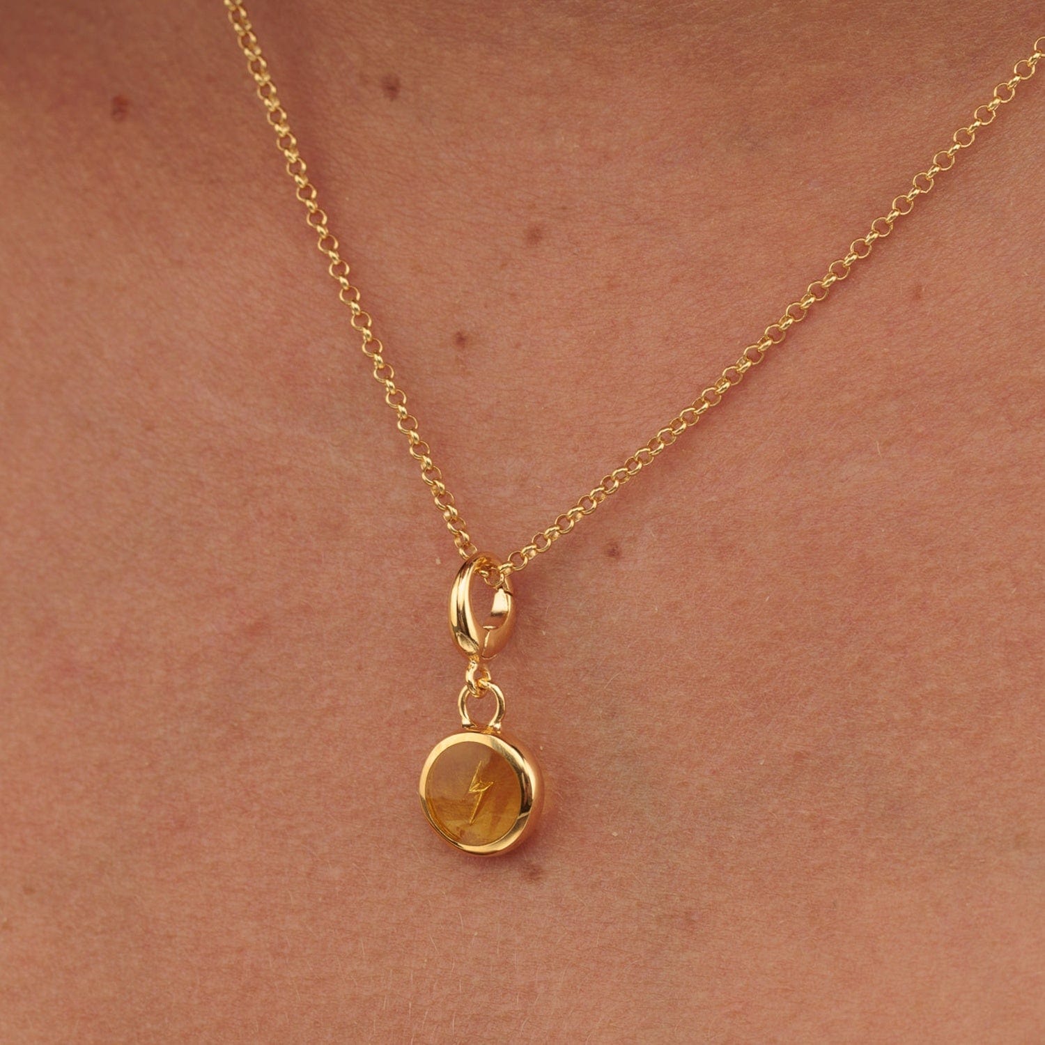 A contemporary take on the wonders of amber, this yellow resin capture charm holds an intriguing secret. When the light dances across the translucent resin centre a dainty silver lightning bolt charm is revealed, as if preserved for all time. Crafted from recycled 925 sterling silver this yellow resin disc charm celebrates the natural properties of amber and adds a touch of energy to your style in radiant yellow hues.